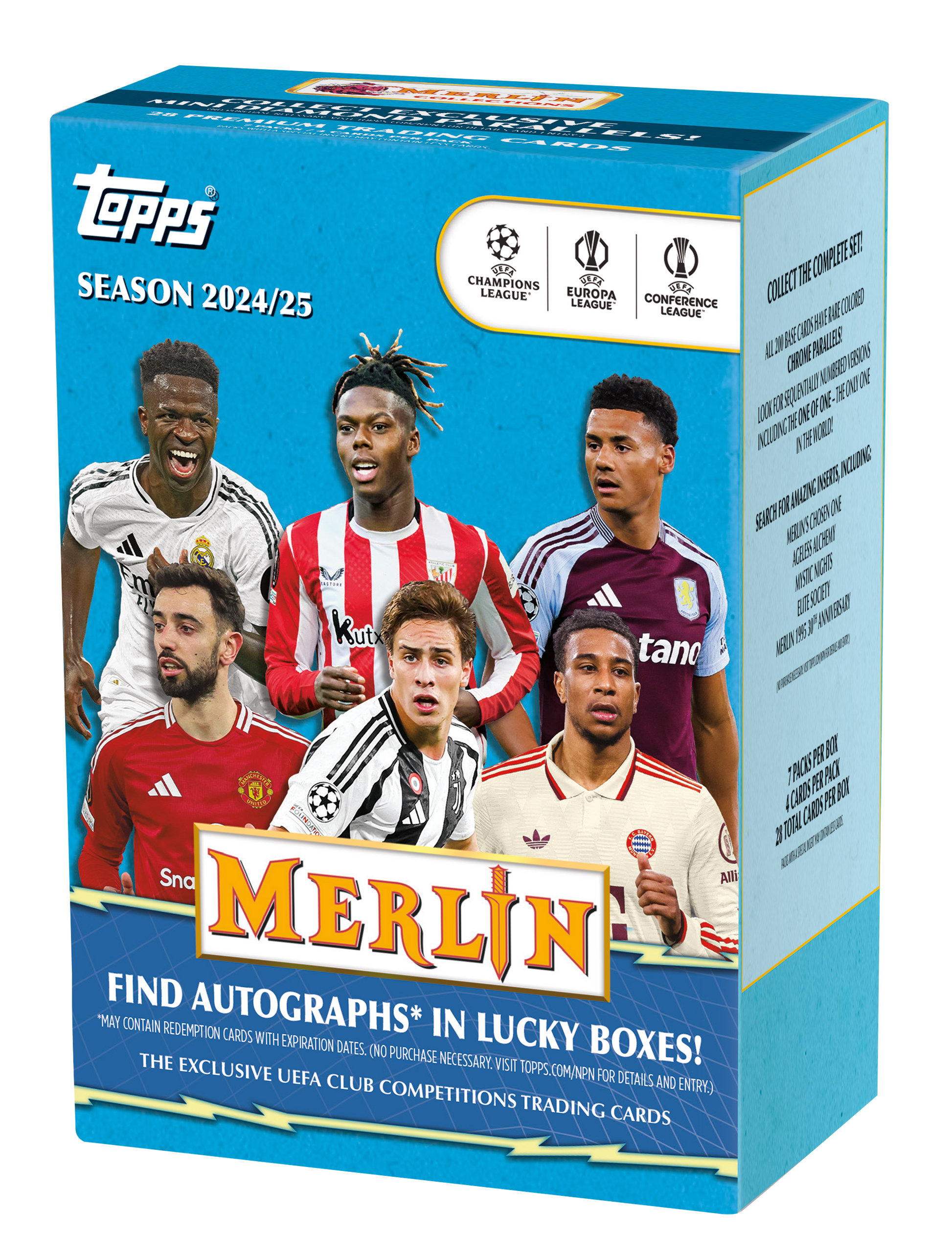 Indulge in some hocus pocus when you rip a box of Topps Merlin UEFA Club Competitions 2024/25 with 3 Exclusive Mini Diamond Refractors, 1 Sequentially Numbered Parallel, 1 Base Card Refractor parallel and 2 Insert Cards guaranteed per box.